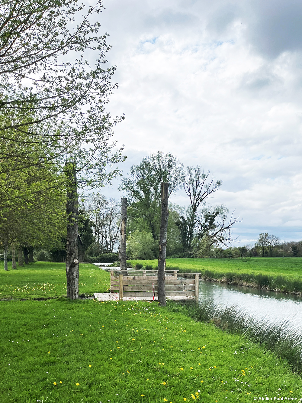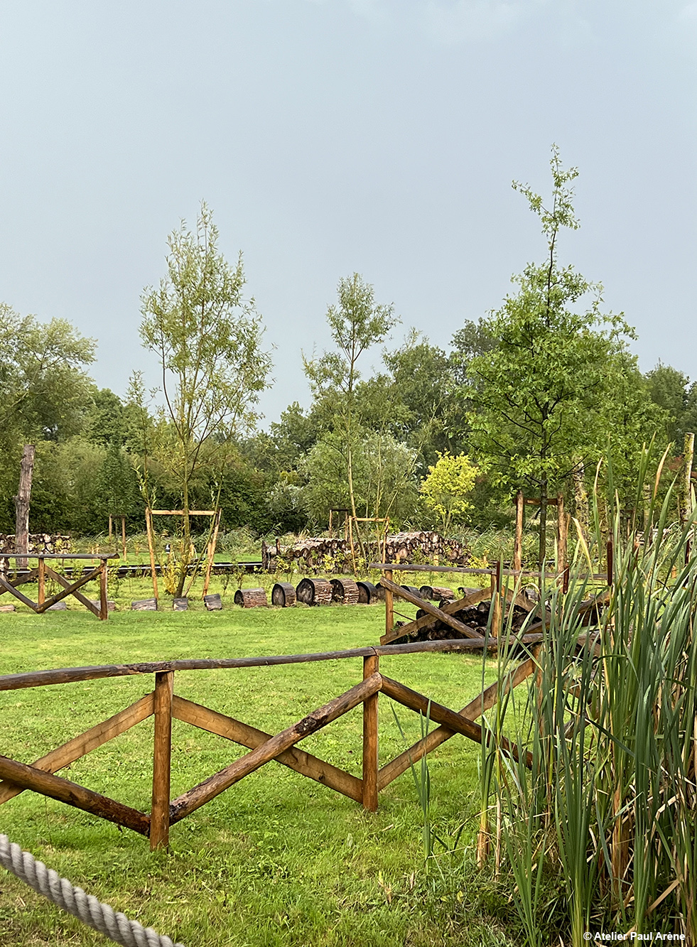 Notre démarche a consisté à reconnecter cet espace au village et à ses équipements, tout en consolidant les usages de promenade et de loisirs qui existaient déjà. Il s'agissait de repenser la place de la nature, de valoriser les richesses environnementales et les savoir-faire locaux, d'affirmer une dimension pédagogique et culturelle, et de créer un lieu d'accueil vivant tout au long de l'année, en renforçant à la fois l'attractivité touristique et le patrimoine du village.